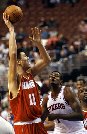 图文:火箭客场挑战76人 姚明勾射如高山仰止