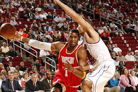 麦蒂几乎完全控制着火箭的进攻,当他手感好的时候,那么自然一切顺利,突破、中投、三分,他可以无所不能,麦蒂有能力凭借一己之力获得胜利,但是从长远角度看,一支球队不能把胜利的希望寄托在一个人身上,特别是面对季后赛级别的对手。