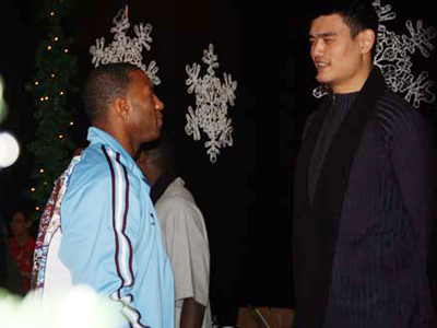 姚麦同桌与火箭球迷联欢 麦迪亲自为姚明系围脖