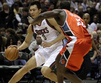 CCTV.com综合消息:北京时间12月23日,密尔沃基雄鹿队主场迎战夏洛特山猫队,最终雄鹿队103比99战胜对手。易建联在比赛中全面爆发,得分再创新高,全场拿下29分10个篮板球,这也是易建联NBA生涯的首个两双。另外一场比赛中休斯敦火箭队116比98大胜公牛,止住了连败的势头,姚明得到18分,抢下8个篮板。