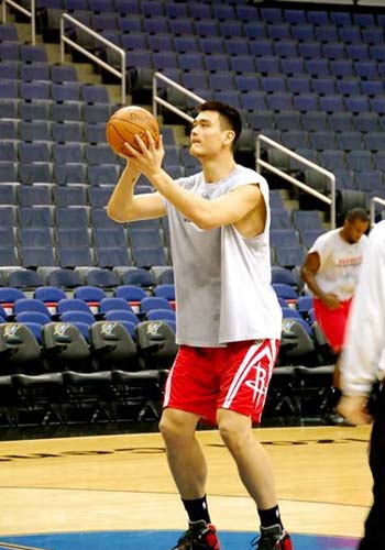 图文:[NBA]火箭VS奇才训练图 姚明练习投篮