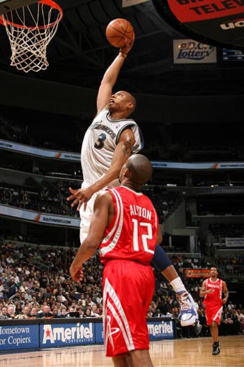 腾讯体育讯 北京时间1月9日,火箭客场挑战奇才,图为巴特勒怒扣阿尔斯通。