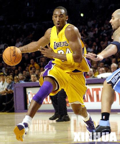 | 12月1日,洛杉矶湖人队球员科比(左)在比赛中带球进攻。当日,在NBA常规赛中,湖人队主场以132比102战胜犹他爵士队。 新华社记者戚恒摄 |
