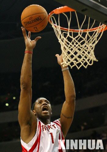 | 12月9日,火箭队球员麦克格雷迪上篮。当日,在NBA常规赛中,休斯敦火箭队客场以114比109战胜华盛顿奇才队。新华社记者班玮摄 |