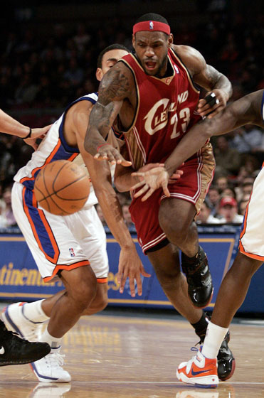 图文:[NBA]骑士负尼克斯 詹姆斯突破重围
