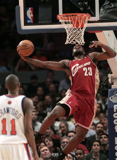 图文:[NBA]骑士负尼克斯 詹姆斯秀灌篮绝技