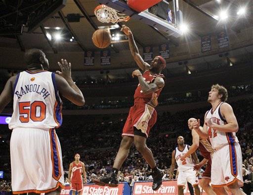 搜狐体育讯 美国当地时间12月19日晚(北京时间20日上午),2007-08赛季NBA常规赛继续进行,其中纽约尼克斯队主场108-90胜克利夫兰骑士队。图为现场精彩镜头。(搜狐体育)