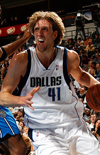 TOM体育讯 北京时间2007年12月18日,今日小牛在主场迎来东部劲旅魔术队的挑战,前者16胜9负正从低靡状态中走出来,而后者此前取得了17胜8负的骄人战绩,客场战绩12胜3负。上半场的比赛正如赛前所预料,客场战力颇高的魔术队一直与小牛纠缠,可惜当比赛进行第三节后,板凳实力更加深厚的小牛显露出优势,一度将优势拉至10分以上,不过魔术在比赛最后时刻曾将比分追至只差一分,德克-诺维茨基拿下31分11板成为最大获胜功臣,德怀特-霍华德也有22分13板,最终小牛队惊险的一111-108拿下这场惊心动魄的对抗。