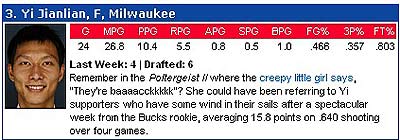 上周大宝宝生涯首度先发拿下16分9个篮板,不过新秀榜第十本赛季一直是过客匆匆,杨和布鲁尔都是一闪而过,不知道戴维斯能不能继续攀升。
