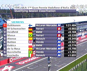 央视国际消息:北京时间9月9日,F1意大利站排位赛在蒙扎赛道进行。最终,迈凯轮车队芬兰车手莱科宁夺得杆位,成绩是1分21秒484。车王舒马赫最终排名第二。阿龙索在排位赛中不幸爆胎,最终排在第五。