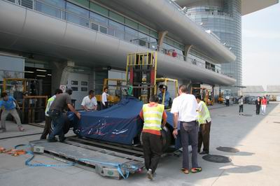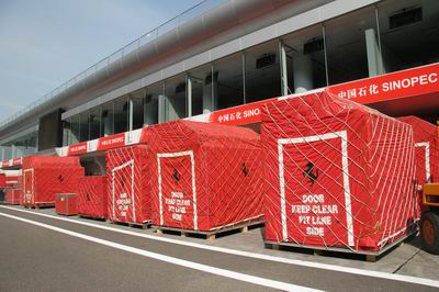 虽然目前赛道上还是空空,但F1各车队的准备工作已经开始。上午10时我们赶到工作间的时候,我们看到中国海关工作人员和巡逻犬正在对车队设备箱进行检查。随后,车队工作人员开始井然有序拆装设备箱,在这里我们看到了一个个熟悉的车队名字,法拉利、雷诺、迈凯轮等等,但是,现在还是“只见其车,不见其人”,各车队的车手们将在随后的几天陆续到来。届时,我们也会为大家做及时报道。
