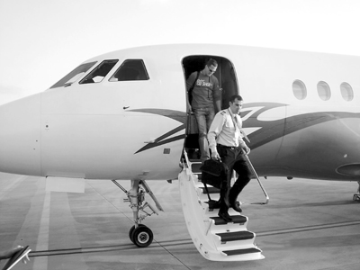 舒马赫的私人飞机直接停靠在了浦东机场公务机停机坪上。此时,舒马赫穿着车队T恤,下身竟穿着睡裤。在机场,舒马赫风头完全盖过了老板让·托德,很多人的目光都注视着这位即将退役的车王。马萨更“惨”,虽然与舒马赫同在法拉利车队,但现场根本就没有人把他认出来。没有人来上搭理,更谈不上要签名了。