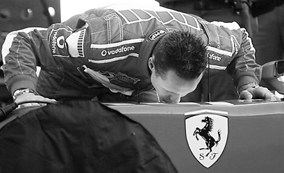 最后一次跨进火焰战车,注视着眼前即将改变的一切,车王俯下身,在248F1的车身,烙下深情一吻。最后一次在赛道上作舒米跳,飞身扑向罗斯·布朗,法拉利的“冠军铁三角”今日亦走到了分别的时刻。