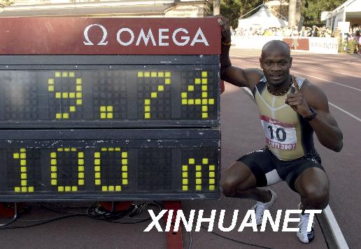 9月9日,国际田联大奖赛意大利站,牙买加短跑名将鲍威尔以9秒74的成绩打破了由他本人保持的男子百米世界纪录。