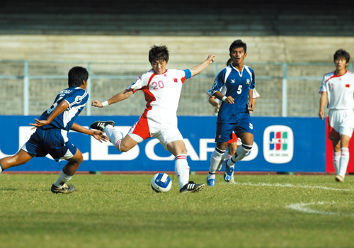 | 国青队员在比赛中拔脚怒射CFP图 |
