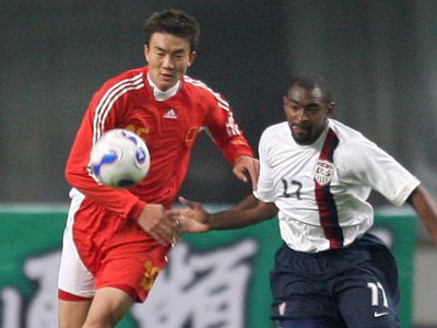 如训练中杜伊号召球员呼喊“China—胜利”所寻求的气势,开场后中国队迅速利用两边路展开冲击,沈龙元与杜震宇的下底传中尽管未形成有效接应,但给美国防线施加了一定压力。美国队求稳健中更突出效率,第3分钟霍根中路远射被刘震理封出,此后数分钟内美国队中场多次断球,又相继形成3次远射,虽然威胁均不大,但多少体现了对抗能力,中国队中前场则略感缺乏有效组织。第8分钟,孙祥左翼斜线长传找到右路空档,可惜沈龙元下底传中时失误,直接将球踢出底线。