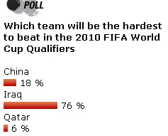 从亚足联的调查结果来看,球迷普遍认为死亡之组中澳伊两强的实力较强,也成为出线大热门,这一点也在最新的澳大利亚官网民意调查中得到体现。澳大利亚官网调查提出的问题是“你认为在20强赛小组赛中哪支队伍将是澳大利亚最难对付的对手”,从最新的结果来看,76%的球迷认为伊拉克是最强大对手,比率超过了四分之三。而仅有18%的球迷认为中国不好对付,卡塔尔的更低,仅有6%认为卡塔尔实力强大。