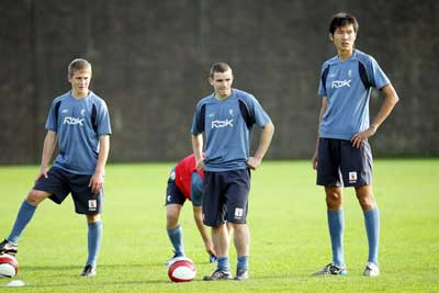 北京娱乐信报消息:昨天,被称为“中国克劳奇”的武汉小将杨昌鹏出现在英格兰博尔顿队的训练场上,他和队友周燎将跟随博尔顿队进行为期一个月的训练。杨昌鹏1989年出生,前锋,身高达到了2米03,而英格兰球员的大个子前锋克劳奇的身高为2米,杨昌鹏一到英伦便引起了媒体的兴趣。另一位小将周燎也是1989年出生,前锋,身高1米84,目前是武汉队U17梯队的主力射手。