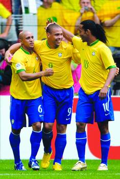 | 三个R一台戏,他们共庆巴西队顺利晋级八强。 |