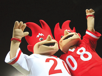 | 2008年欧洲杯足球赛吉祥物双胞胎兄弟亮相赛场 |