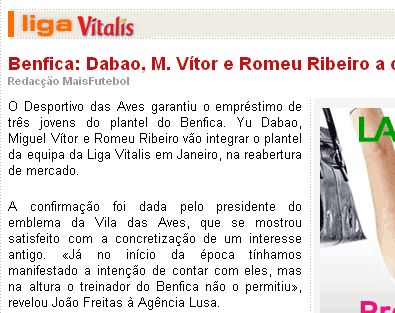 葡萄牙媒体也打出了相关的报道,而弗雷塔斯更是披露了这样一个事实,“这三名球员毫无疑问将增强我们的实力。在这个赛季开始的时候我们就找本菲卡申请租借这些球员,但是当时他们的主帅(指卡马乔)并未同意。现在幸运的是我们成功了”。