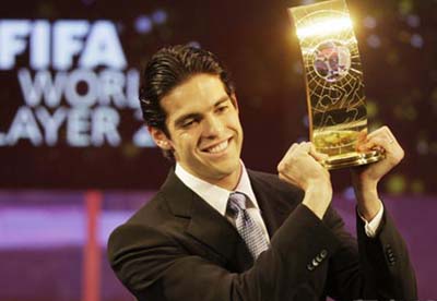 当晚在苏黎世歌剧院举行的国际足联颁奖典礼上,国际足联主席布拉特宣布,在有160个国家(地区)队的主教练和队长进行的投票中,卡卡以1047分的绝对优势当选本年度的世界足球先生。阿根廷球员梅西(504分)和葡萄牙小将克·罗纳尔多(426分)分列二、三位。