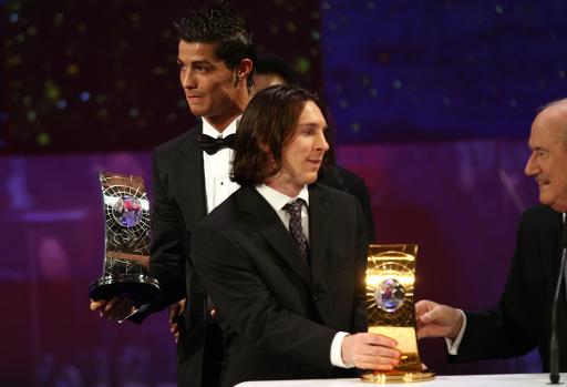 在卡卡获奖后,主持人邀请获得第二名和第三名的梅西和C-罗一同上台领取奖杯,或许是因为上赛季在冠军联赛中和卡卡的较量完败,因此整场曼联小生C-罗都臭着一张脸,在上台后与主持人和卡卡握手时,C-罗也是面无表情。有趣的是,C-罗在拿奖时拿走了本应属于梅西的第二名奖杯,直到主持人善意的提醒:“Lionel is the second(莱昂内尔,即梅西,是第二名)”,C-罗才尴尬的和阿根廷人交换了奖杯。另外,由于在上周末与瓦伦西亚的联赛中大腿肌肉严重受伤,梅西本来有可能缺席此次颁奖,但最终阿根廷人还是来到了瑞士,不过由于腿伤,梅西在上台时走路稍显不适。