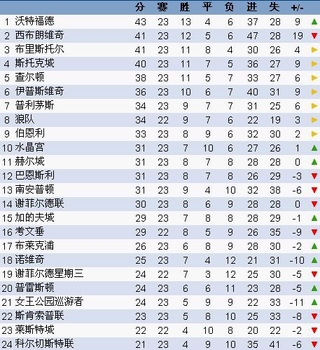 在本轮的其他几场比赛中,领头羊沃特福德本轮客场1比0击败了谢周三队,重新从西布朗维奇手中夺回了联赛杆位。而西布朗维奇本轮则是客场1-3输给了斯托克城。这样斯托克城则积40分,继续排名第四。第五名则就是郑智所在的查尔顿队。
