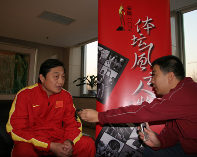 | 姚滨获得最佳教练员提名,在接受记者采访 |