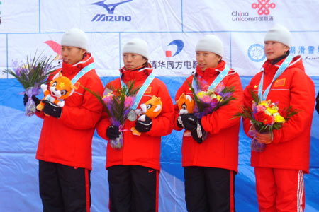 北京时间2月3日上午,第6届亚冬会越野滑雪女子4X5公里接力决赛结束。结果哈萨克斯坦以1:04:42.2的成绩夺得冠军; 中国队以1:06:25.4的成绩获得亚军;日本队以1:07:29.4的成绩获得第三名。