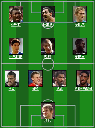 亚库布(埃弗顿)、特维斯(曼联)、多伊尔(雷丁)