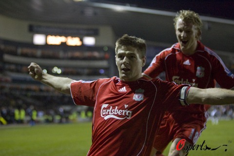TOM体育讯 北京时间12月26日晚,英超联赛第19轮的节礼日大战全面打响。利物浦今天来到普莱德公园球场做客,西班牙国脚托雷斯上半场为红军首开纪录,而德比郡则在下半场一度将比分扳平。终场前利物浦队长杰拉德补射建功,帮助本队客场全取3分而归。