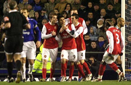 北京时间12月30日01:15(英国当地时间29日17:15),2007/08赛季英格兰足球超级联赛第20轮一场焦点战在古迪逊公园球场展开争夺,阿森纳客场4比1取胜埃弗顿,卡希尔先拔头筹,达-席尔瓦梅开二度反超,本特纳被罚下,替补出场的阿德巴约扩大比分,阿尔特塔也被罚下,替补出场的罗西基锦上添花。近4个联赛客场首尝胜绩的阿森纳重夺积分榜首。