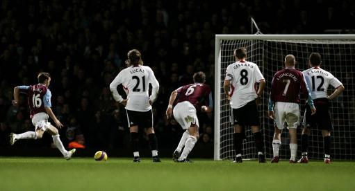 [内容速览]  北京时间2008年1月31日凌晨,英超联赛第24轮继续进行,联赛四连平的利物浦客场对阵西汉姆联。最终西汉姆凭借终场前诺贝尔打进的点球1-0险胜。图为比赛精彩瞬间。