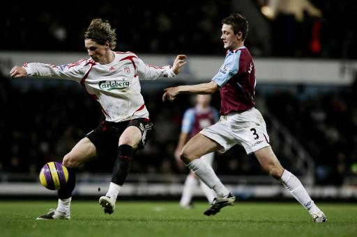 搜狐体育讯 北京时间2008年1月31日凌晨,英超联赛第24轮继续进行,联赛四连平的利物浦客场对阵西汉姆联。最终西汉姆凭借终场前诺贝尔打进的点球1-0险胜。图为比赛精彩瞬间。