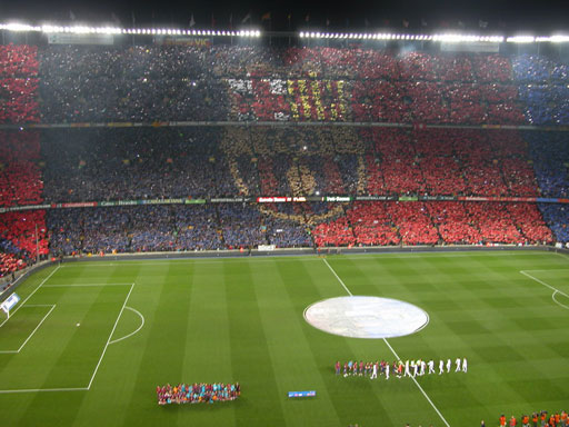 诺坎普看台上拼起的巴萨队徽