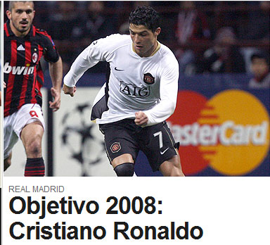 C罗是皇马08年的头号引援目标,《阿斯报》截屏
