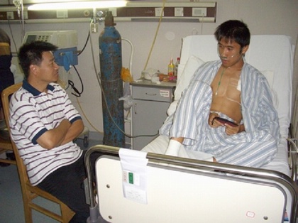 夜幕初上,东方医院909房间里的灯光有些冷暗,同房的两个病友都已经是爷爷辈的岁数,21岁的杨纯刚俨然成了这个病区里最醒目的病人。枕头边立着的便是一个一人多高的氧气筒,现在的他,必须借助这样的辅助设备来维系正常的生理。床牌上“一级监护”的四个大字有些醒目,每隔一个小时,就会有专门的值班医生和护士,到他的床前来记录他的情况,被照顾者的生活,让他觉得有些不自然。“现在人感觉好多了,呼吸还有些困难,但至少不像之前那么疼了。医院就是太安静了,没一点事情可做。”