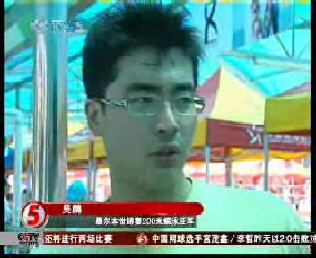CCTV.com消息:全国游泳冠军赛:寿星吴鹏百米蝶泳失金