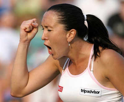 新华社/路透消息:7月1日,塞尔维亚选手扬科维奇庆祝胜利。当日,在伦敦进行的温布尔登网球赛女单第三轮比赛中,塞尔维亚选手扬科维奇以2比1战胜美国选手维纳斯·威廉姆斯,晋级下一轮。