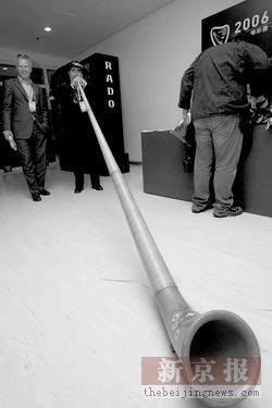 一位瑞士老球迷特地赶来为费德勒加油,并带来4米多长的长号。记者吴江摄