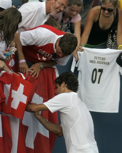 图文:费德勒步入50冠殿堂 费天王给球迷签名