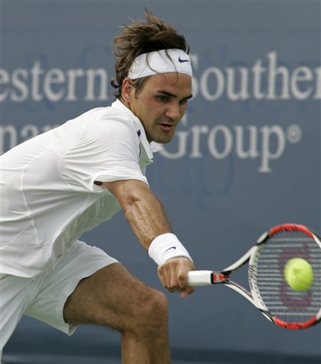 图文:费德勒步入50冠殿堂 费德勒反手回球