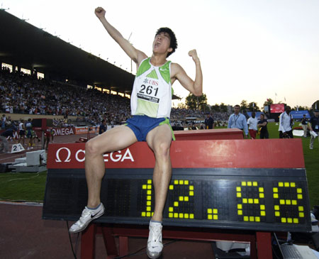 北京时间7月12日凌晨,在刚刚结束的国际田联超级大奖赛洛桑站男子110米栏的决赛中传来好消息,中国选手刘翔以12秒88的成绩打破了沉睡13年之久的男子110米栏世界纪录,并夺得金牌!该项目原世界纪录是由刘翔和英国名将科林-杰克逊共同保持的12秒91。第2名美国人阿诺德12秒90的成绩也打破了旧的世界纪录,他的同胞特拉梅尔则以13秒02的成绩排在第3,古巴新秀罗伯斯以13秒04的成绩排在第4,而世锦赛冠军杜库雷继续低迷,仅跑出13秒46。另一名中国选手史东鹏则在第2组的比赛中以13秒47的成绩获得小组第3。