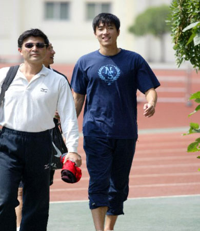 由于北京奥组委还要利用训练时间为刘翔拍摄宣传片素材,昨天的训练课直到中午12点才结束。在等待刘翔的时间里,孙海平和记者的话题又回到了几天前在刘翔官方网站的聊天,他当时曾提及自己年轻时非常喜欢游泳,还横渡过黄浦江。