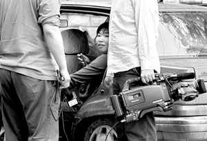 | 在央视记者的陪同下,艾冬梅钻进车子直接离去 |
