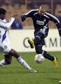 新浪体育消息:北京时间12月7日3时45分(欧洲中部时间6日20时45分),冠军杯小组赛E组开始最后1轮角逐,皇马客场2比2逼平基辅迪那摩。乌兹别克前锋沙茨基赫上半时梅开二度,贝克汉姆下半时射中门柱。最后时刻,贝克汉姆开出角球,罗纳尔多终结了长达2年的冠军杯进球荒,随后他又赢得点球并亲自操刀扳平。提前获得头名的里昂主场1比1战平布加勒斯特星,终结了本赛季冠军杯主场不失球记录,星队积5分进军联盟杯。