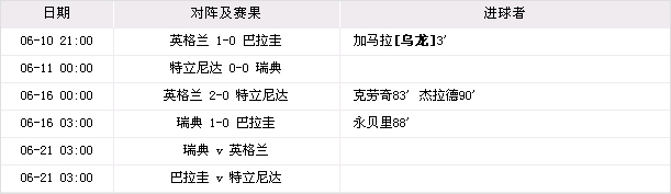 B组的出线队伍本来毫无悬念,但首轮比赛结束后,两支公认的弱旅所表现出的顽强的韧劲让英格兰、瑞典两强的出线形势也越来越明朗。英格兰6分在握,小组出线应该不成问题,而瑞典要想出线,必在6月21日对英格兰的比赛中陷入一场苦战。