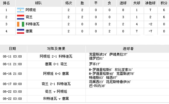 6比0的比分让人拍案叫绝。可以说,在比赛前,谁都没有想到会是这样一个热血屠城般的屠杀,谁都没有想到阿根廷的这场比赛会是在世界杯开赛以来是打得最高分的一场比赛。两战两胜净胜7球!小组最后一轮,阿根廷将以极其轻松的心态面对小组最强对手荷兰队,他们已经在小组第一的争夺战中占先了。