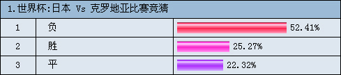 从两队的整体实力来看,克罗地亚还是处于上风的,而且与日本相比,在球员的体能问题上,克罗地亚也是明显占优。在上仗对阵澳大利亚的比赛中,日本球员体能差的问题在下半场比赛中暴露无遗,澳大利亚正是抓住这个机会在最后时刻连扳三球,成功逆转。因此,本场比赛还是比较看好整体实力更强、球员身体素质更强及打法更凶悍的克罗地亚。
